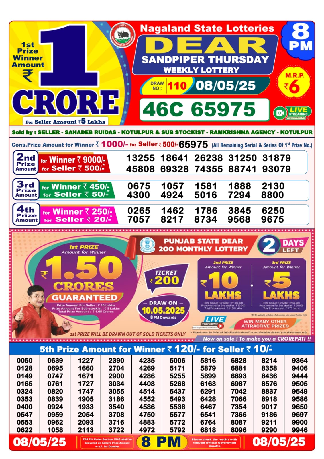 Lottery Sambad 8 PM Result Today 10/12/2025 Dear Night Live