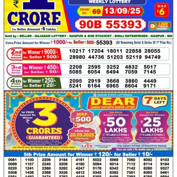 The Dear Lottery 6PM draw is the second of the three daily Lottery Sambad draws, with the others held at 1PM and 8PM. Managed by Sikkim State Lotteries, the 6PM draw is widely followed and results are published immediately after the draw in both PDF and list formats. This evening draw offers multiple prize levels and is known for its punctuality and credibility.