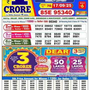 The Dear Lottery 6PM draw is the second of the three daily Lottery Sambad draws, with the others held at 1PM and 8PM. Managed by Sikkim State Lotteries, the 6PM draw is widely followed and results are published immediately after the draw in both PDF and list formats. This evening draw offers multiple prize levels and is known for its punctuality and credibility.