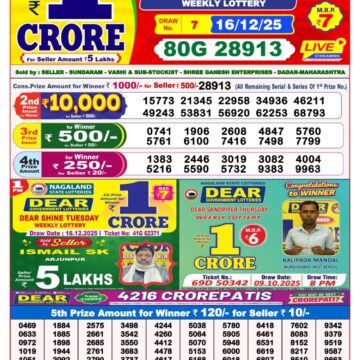 | Tuesday | Dear Shine Weekly Lottery | Dear Prestige Weekly Lottery | Dear Destiny Weekly Lottery |