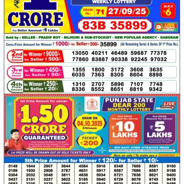 The Dear Lottery 6PM draw is the second of the three daily Lottery Sambad draws, with the others held at 1PM and 8PM. Managed by Sikkim State Lotteries, the 6PM draw is widely followed and results are published immediately after the draw in both PDF and list formats. This evening draw offers multiple prize levels and is known for its punctuality and credibility.