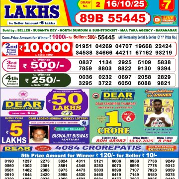 The Dear Lottery 6PM draw is the second of the three daily Lottery Sambad draws, with the others held at 1PM and 8PM. Managed by Sikkim State Lotteries, the 6PM draw is widely followed and results are published immediately after the draw in both PDF and list formats. This evening draw offers multiple prize levels and is known for its punctuality and credibility.