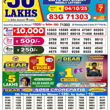 The Dear Result 6PM is a trusted and transparent lottery draw operated under the supervision of the Sikkim State Lotteries department. Backed by years of credibility, the draw continues to attract participants from across the country. Don’t forget to follow the Lottery Sambad schedule and use the Dear Lottery Chart to stay informed. Best of luck!