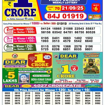 The Dear Lottery 6PM draw is the second of the three daily Lottery Sambad draws, with the others held at 1PM and 8PM. Managed by Sikkim State Lotteries, the 6PM draw is widely followed and results are published immediately after the draw in both PDF and list formats. This evening draw offers multiple prize levels and is known for its punctuality and credibility.