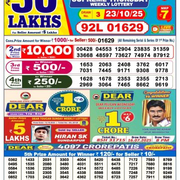 The Dear Lottery 6PM draw is the second of the three daily Lottery Sambad draws, with the others held at 1PM and 8PM. Managed by Sikkim State Lotteries, the 6PM draw is widely followed and results are published immediately after the draw in both PDF and list formats. This evening draw offers multiple prize levels and is known for its punctuality and credibility.