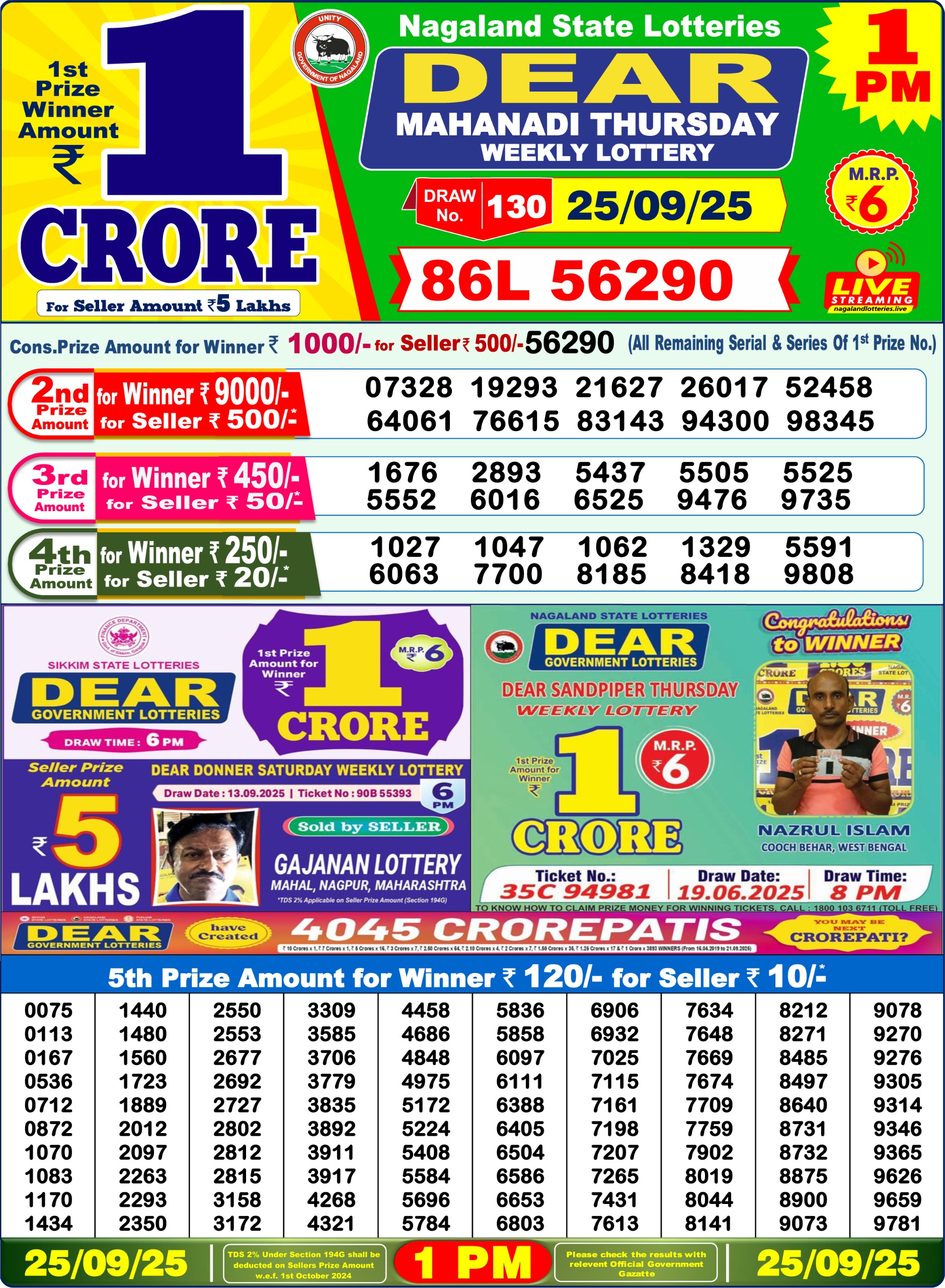 Nagaland Lottery Sambad Morning 1 PM 25/09/25