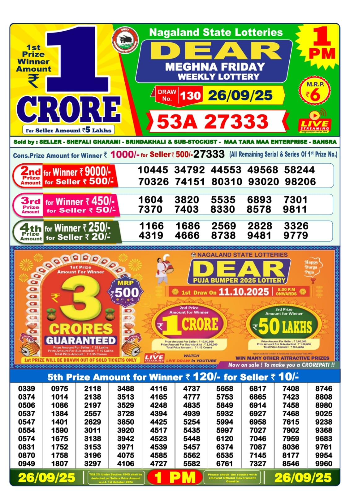 • Nagaland Lottery Sambad Morning Result 1 PM 14/10/25